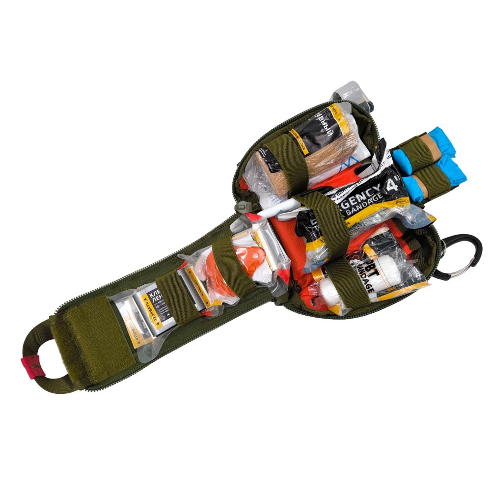Укомплектованная аптечка «GEN 2» состоит из подсумка в цвете олива и набора тактической медицины.