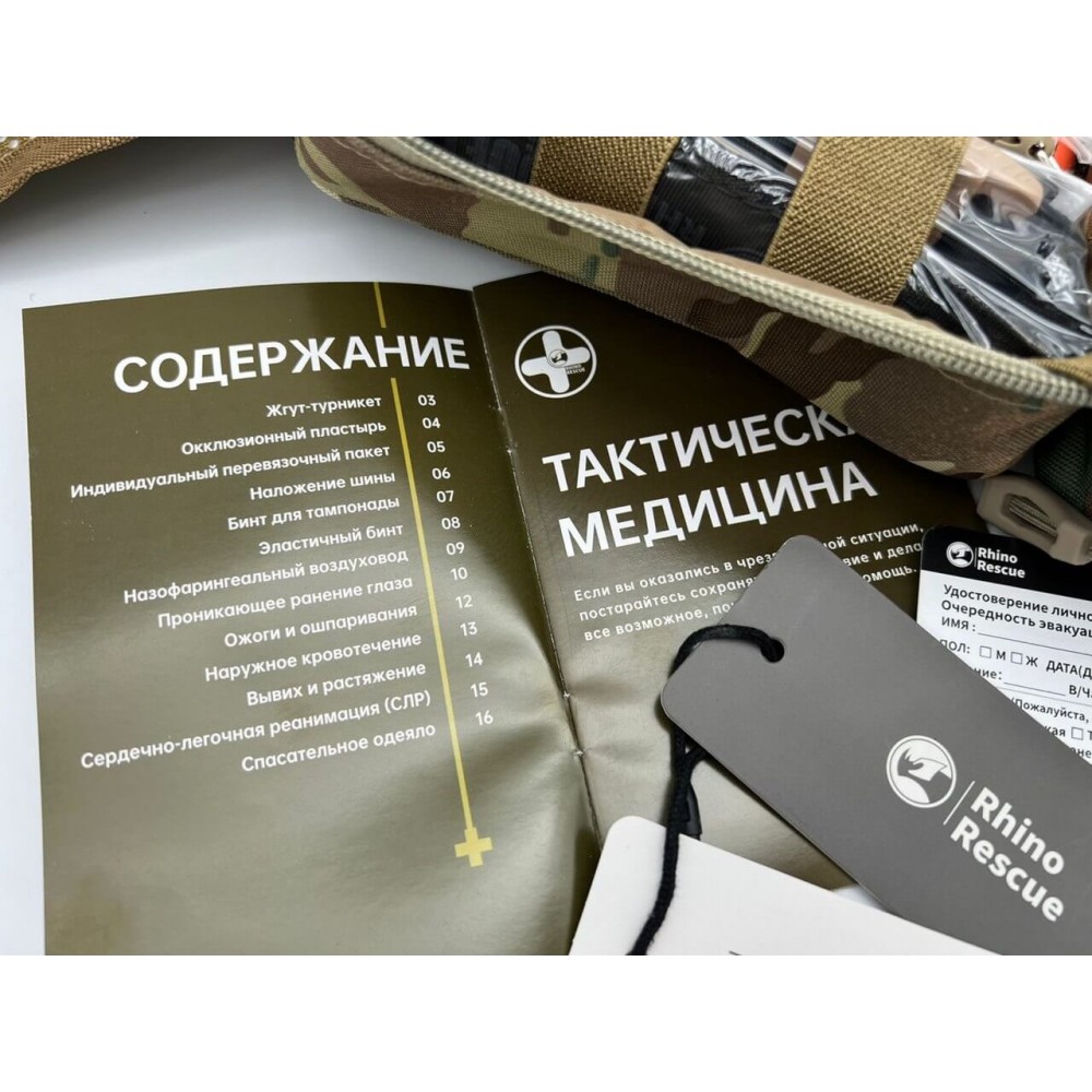 Все это делает аптечку "Rhino Rescue" незаменимым средством для специалистов, оперирующих в условиях высокого риска и требующих быстрого и эффективного оказания первой помощи.
