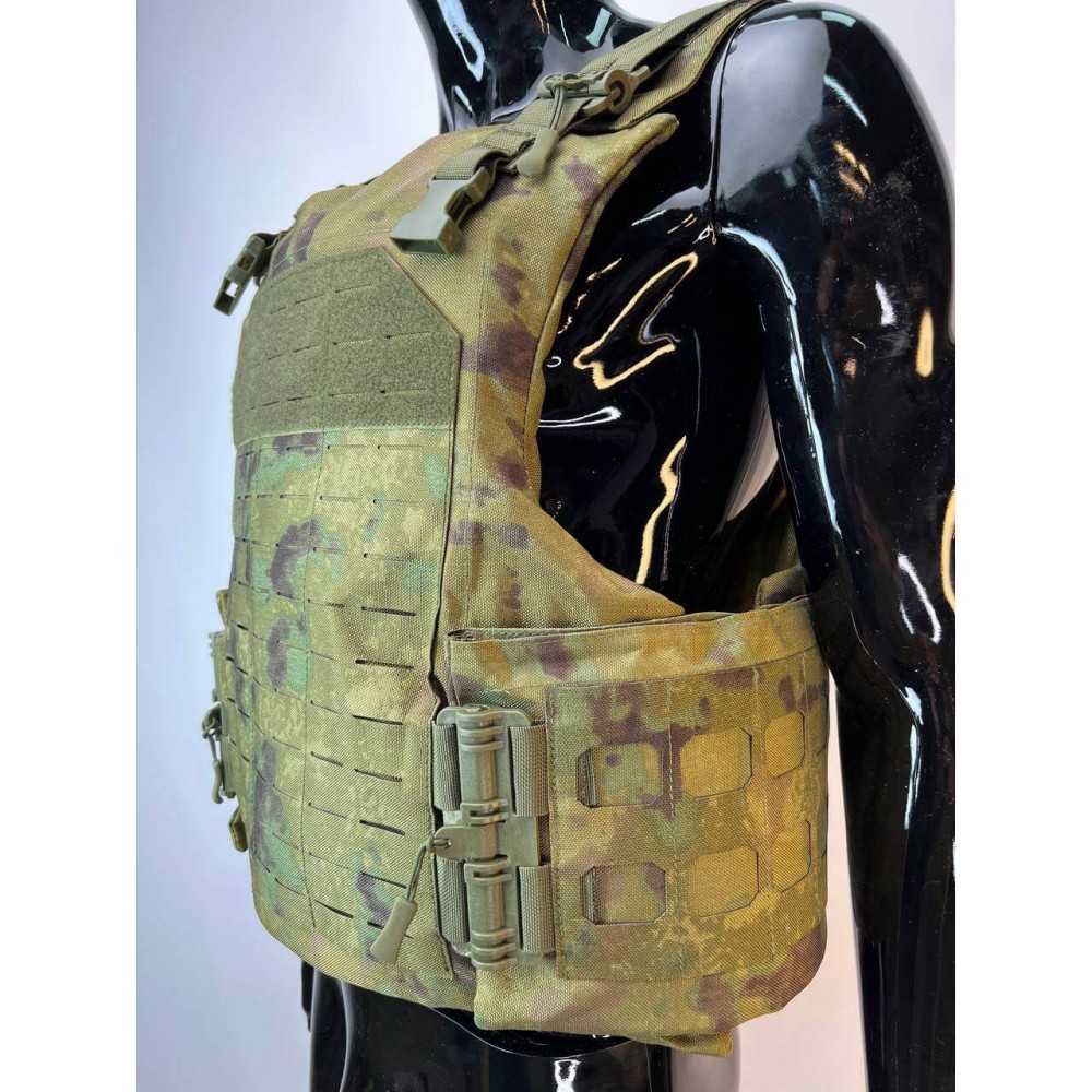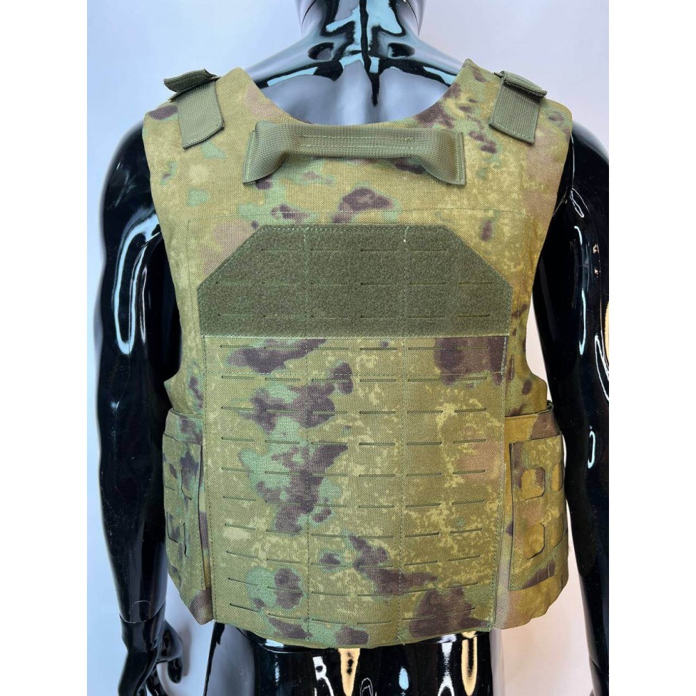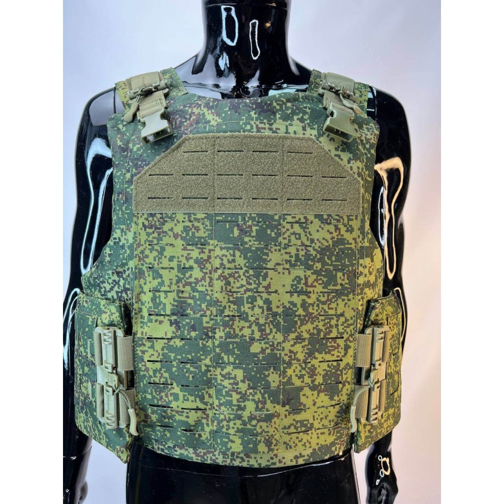 - Бронежилет из Оксфорда 1000d: Внешний чехол бронежилета выполнен из прочной ткани Оксфорд 1000d, обеспечивая износостойкость и водостойкость. Чехол также оснащен системой "MOLLE" для размещения дополнительного снаряжения.