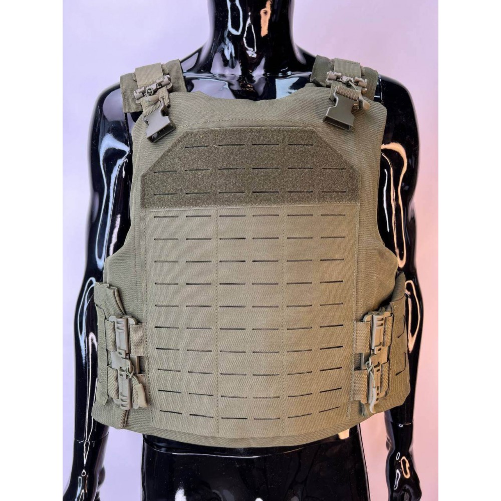 - Баллистический пакет: Бронекомплект оснащен баллистическим пакетом, включающим переднюю, заднюю и боковые пластины. Пакет выполнен из 40 слоев баллистической ткани из сверхвысокомолекулярного полиэтилена высокой плотности, а также имеет дополнительную плиту PE и слой пенки толщиной 4,5 мм. Уровень защиты данного пакета составляет 4.4 (плотность пуленепробиваемого слоя 145).