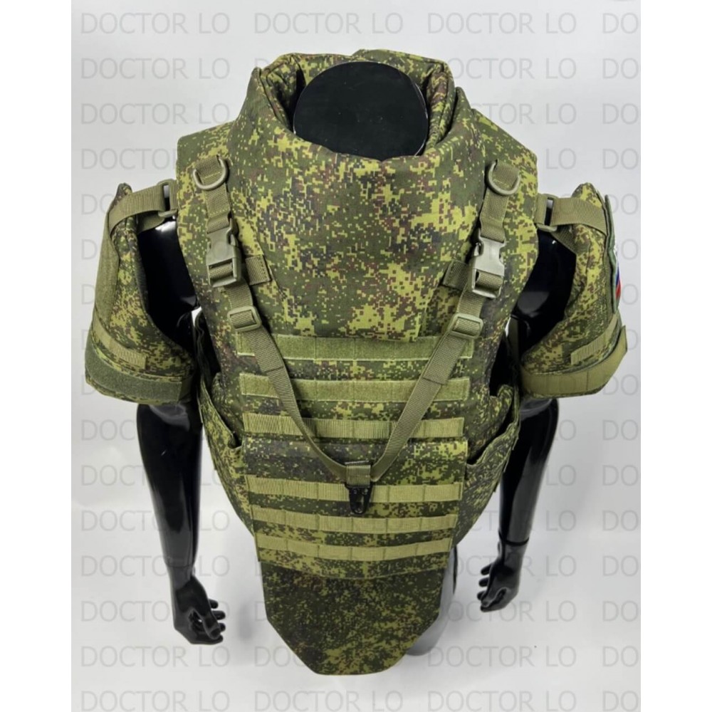 - Полная защита: баллистический пакет включает переднюю, заднюю, боковую, плечевую, паховую зоны и шею.