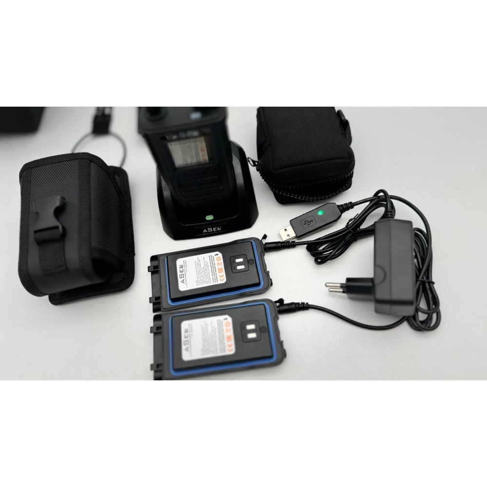 Детектор оснащен съемными литиевыми аккумуляторами емкостью 4000 мАч, обеспечивающими до 5 часов непрерывной работы. В комплекте поставляются три аккумулятора, что позволяет устройству работать до 15 часов без подзарядки. Для обеспечения автономной работы на 24 часа рекомендуется использовать пять аккумуляторов или внешний повербанк и USB-кабель для зарядки (входит в комплект).