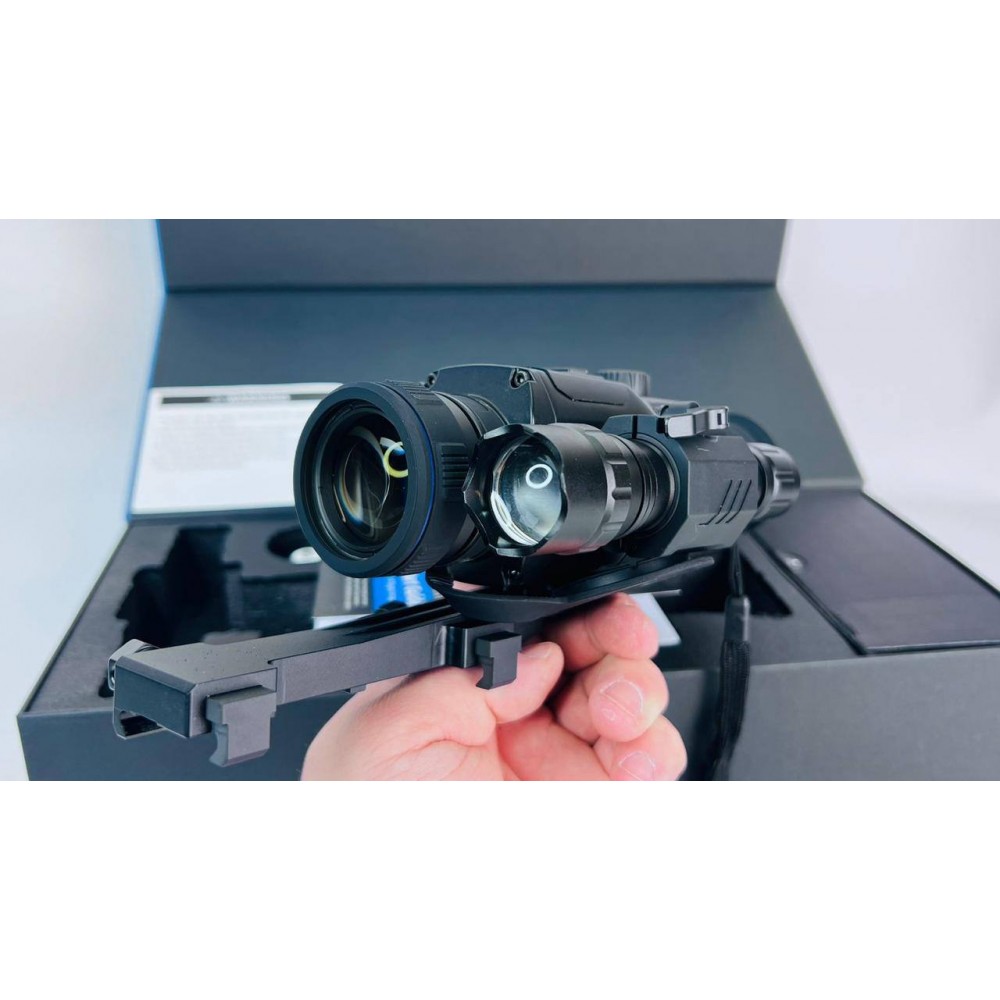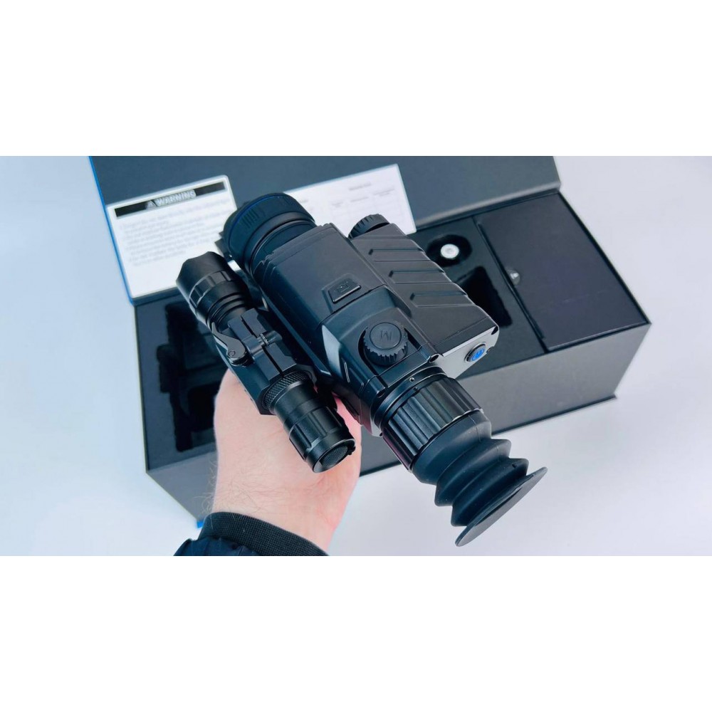 Guide DR30 — это высокопрофессиональный прицел ночного видения, способный работать и в дневное время. Он оснащён продвинутым CMOS-сенсором с разрешением 1920x1080@4μm и 35-миллиметровым объективом, что обеспечивает чёткость изображения и широкое угловое поле зрения — 12,52°x7,06°. Качественный Full HD дисплей с разрешением 1920x1080 позволяет комфортно просматривать изображения. Питание устройства осуществляется от сменного литий-ионного аккумулятора 18650, который может работать до 6 часов, в зависимости от режима использования.