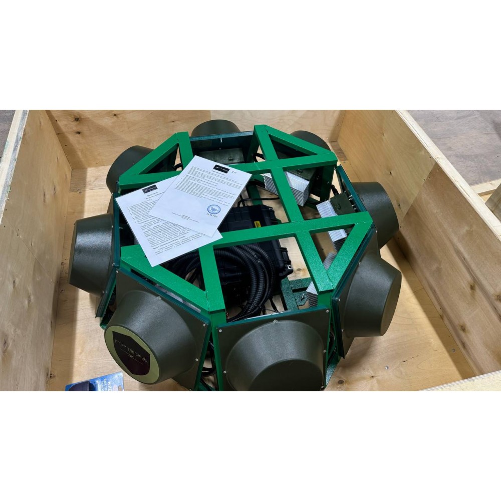 Подавитель FPV дронов «Гроза Броня 3.0» предназначен для защиты автомобилей и бронетехники от атак дронов-камикадзе. Устройство, состоящее из восьми модулей глушения и блока питания, обеспечивает радиоподавление в секторе 360 градусов.