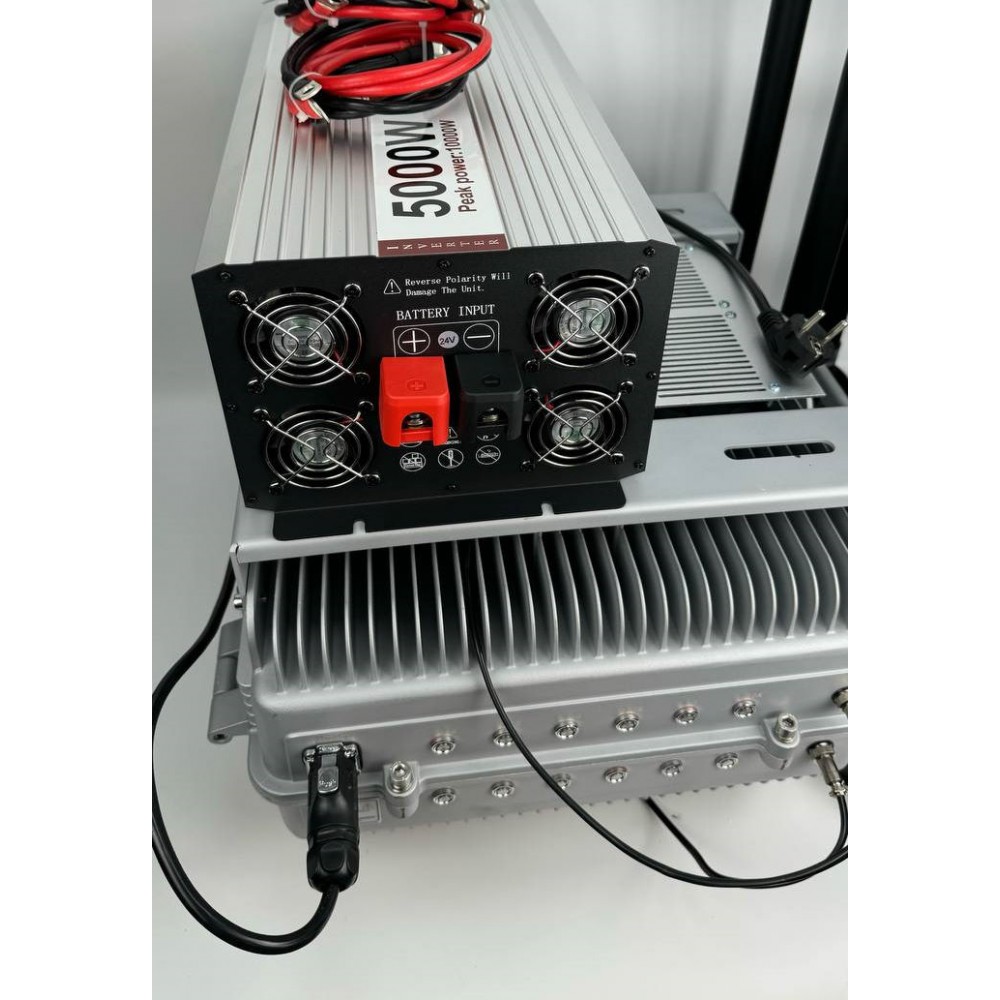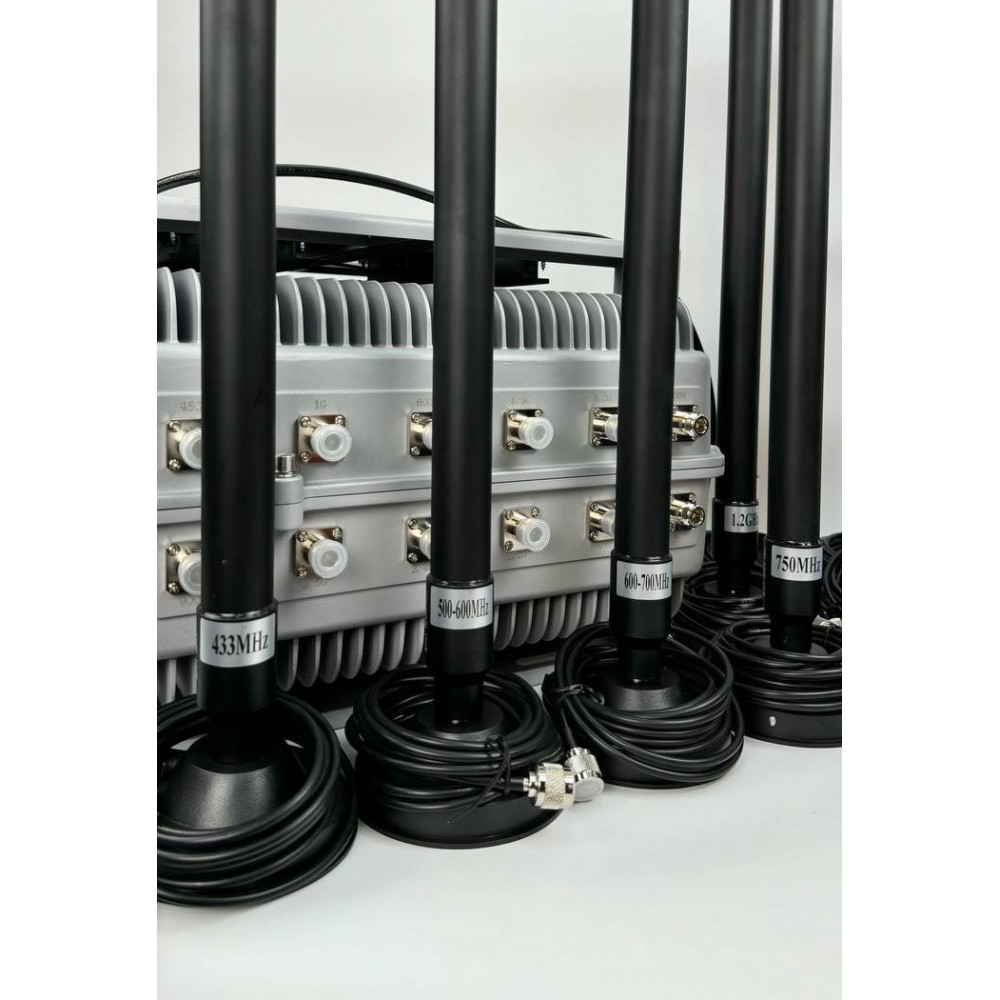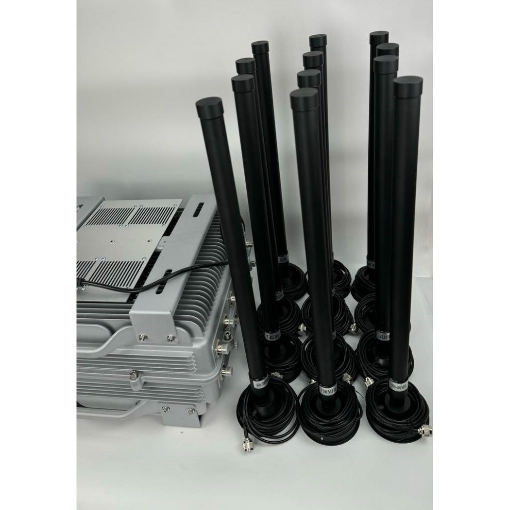Это один из самых мощных подавителей дронов, общей мощностью 600 Вт, что позволяет эффективно бороться с беспилотными аппаратами на больших расстояниях.