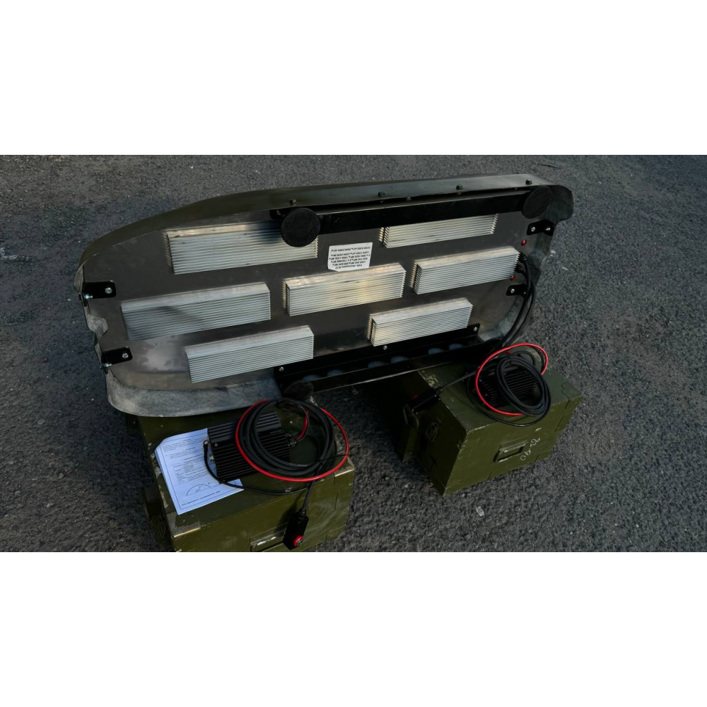 Автомобильная версия устройства весит 28 кг и имеет размеры 1200х500х350 мм, что позволяет устанавливать его на магнитах.