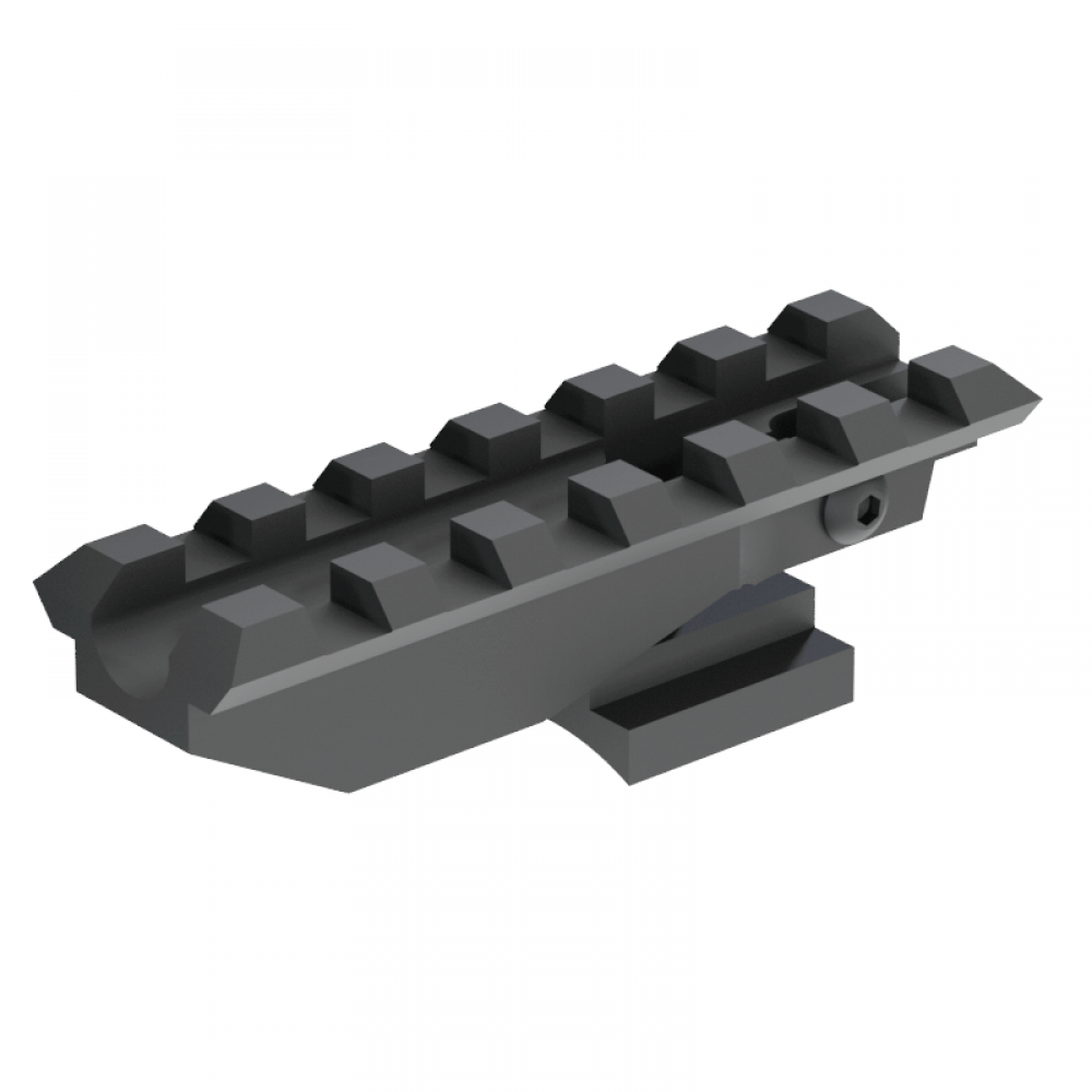 Прицельная планка Монгол малая для АК - это устройство, которое предназначено для установки коллиматоров и других прицельных приспособлений на автоматы серии АК. Она добавляет планку Пикатинни на 6 слотов над ствольной коробкой, что обеспечивает стрелку возможность установки необходимого оптического прицела или коллиматора.