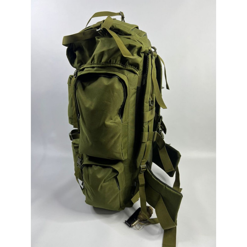 Рюкзак оснащён системой крепления молле, ремнями для крепления каремата, визитницей.